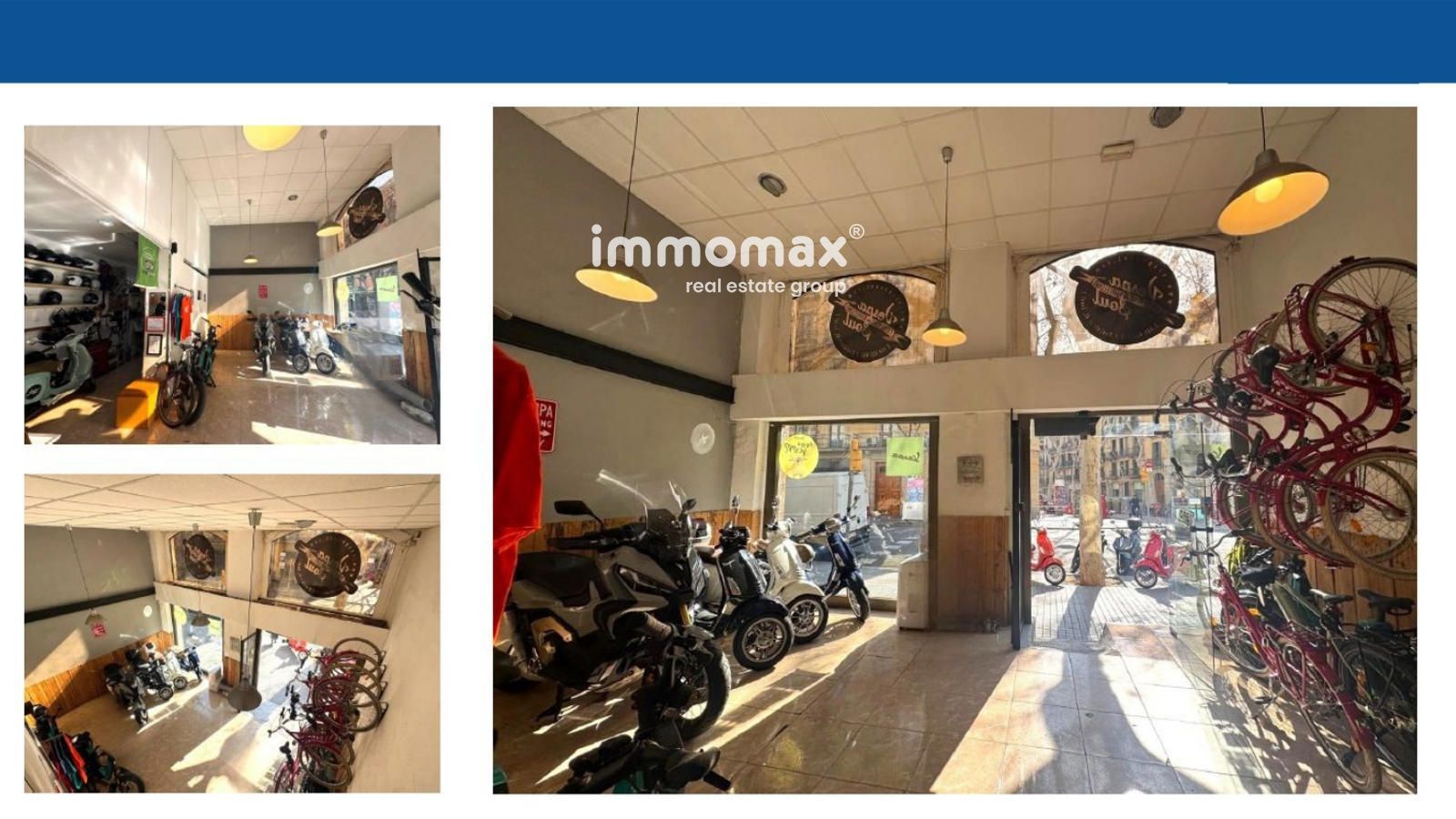 Actualmente el local se destina a alquiler de motocicletas, con opción de ampliación mediante la unión con el local colindante, lo que permitiría aumentar significativamente la superficie disponible.